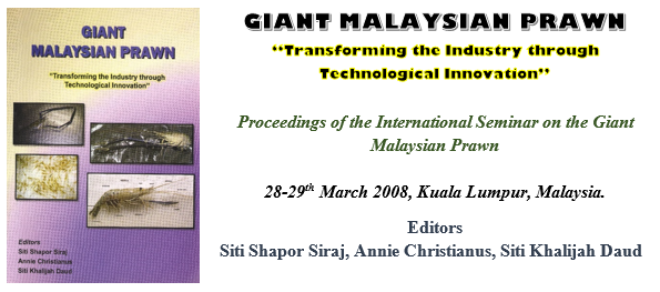 The Giant Malaysian Prawn 2008 was a milestone progress when the scientist from the region united to contemplate and highlighted future research and development to bring back the glory of the industry once achieved for technical, socio-economic and market gains.